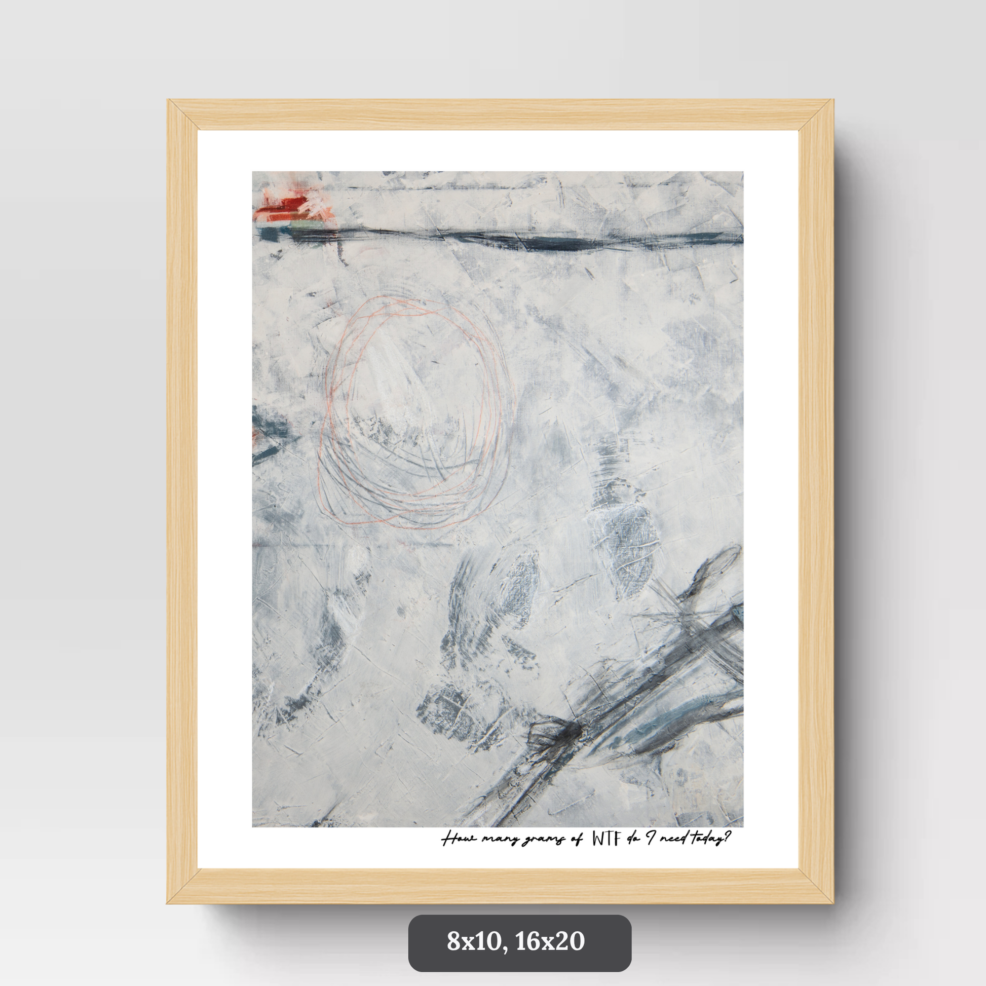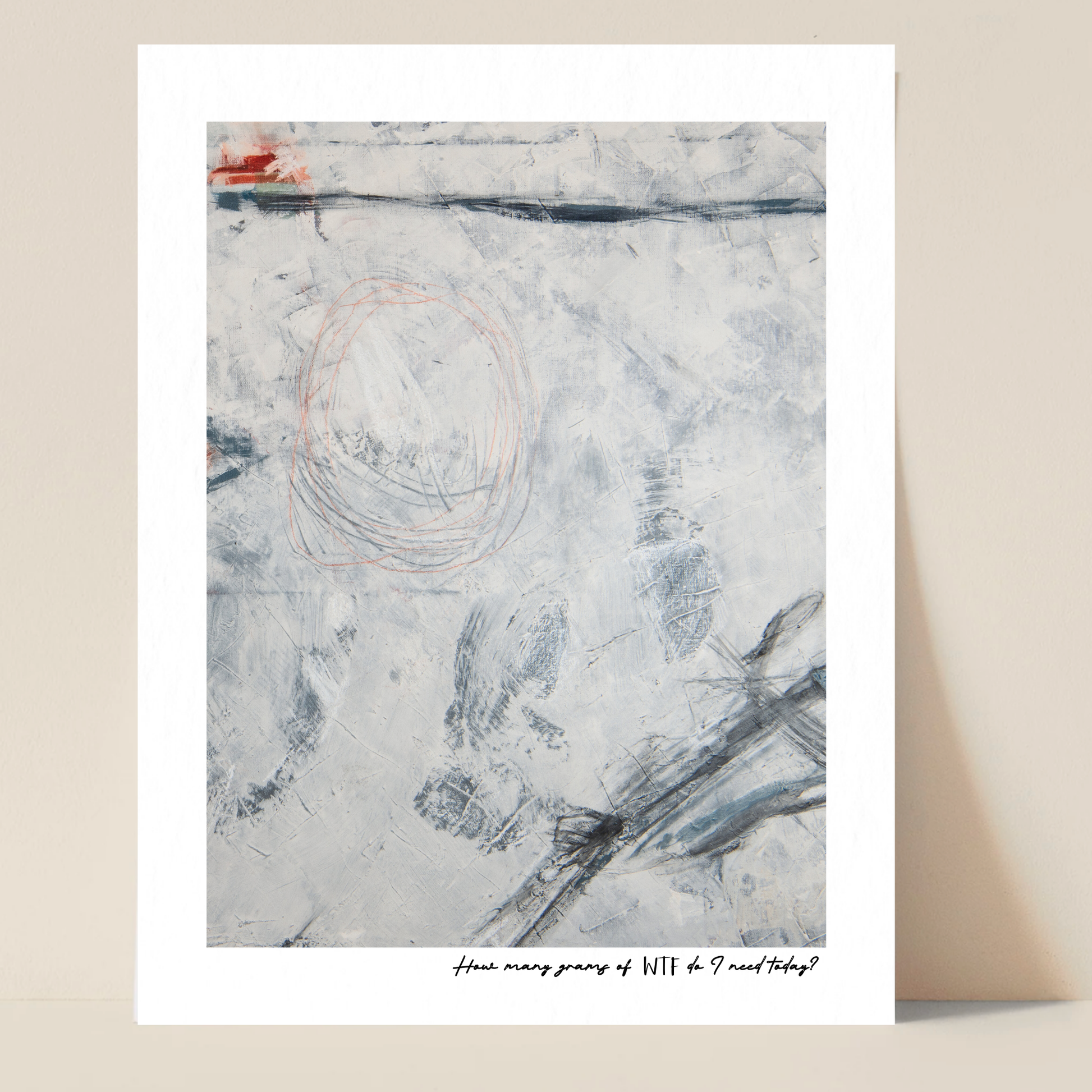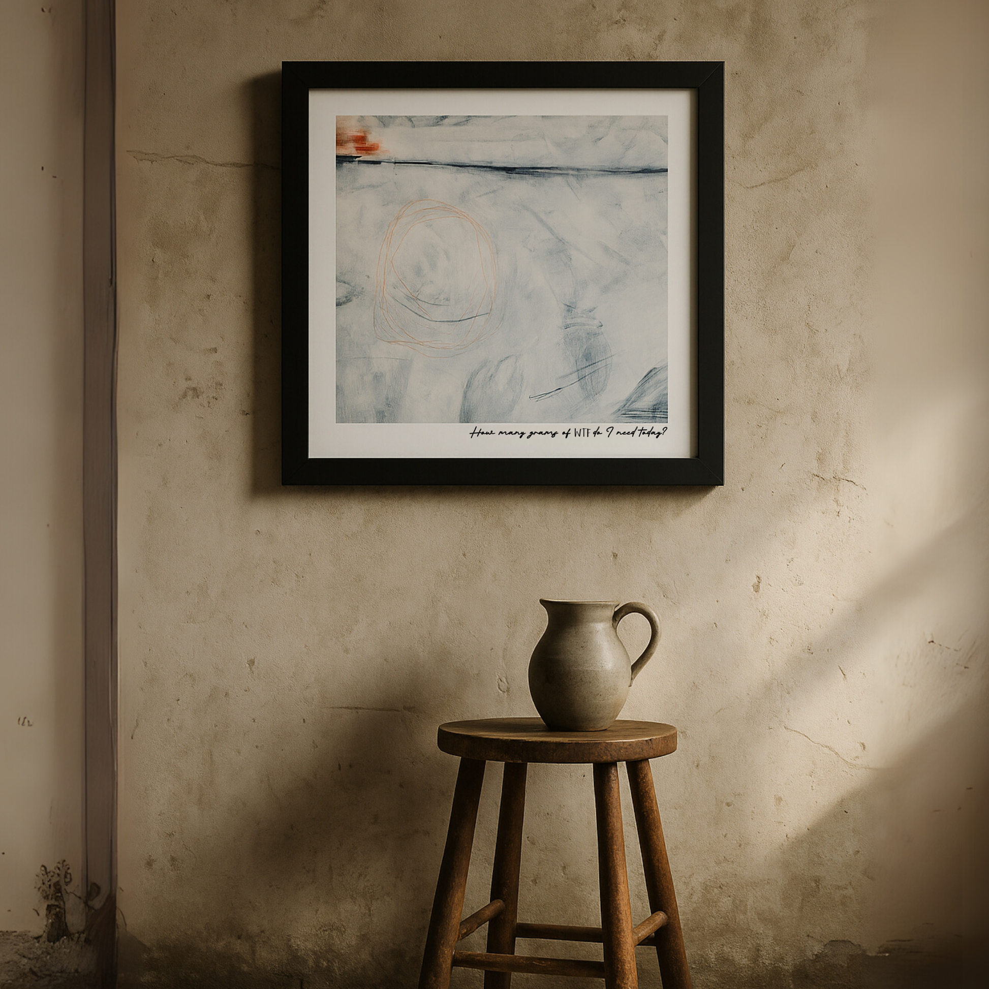 How Many Grams of WTF Do I Need Today? is a wink at the endless list of things we're told to add, fix, and optimize. I mean, WTF! This isn't just art—it's permission to stop optimizing and start living.