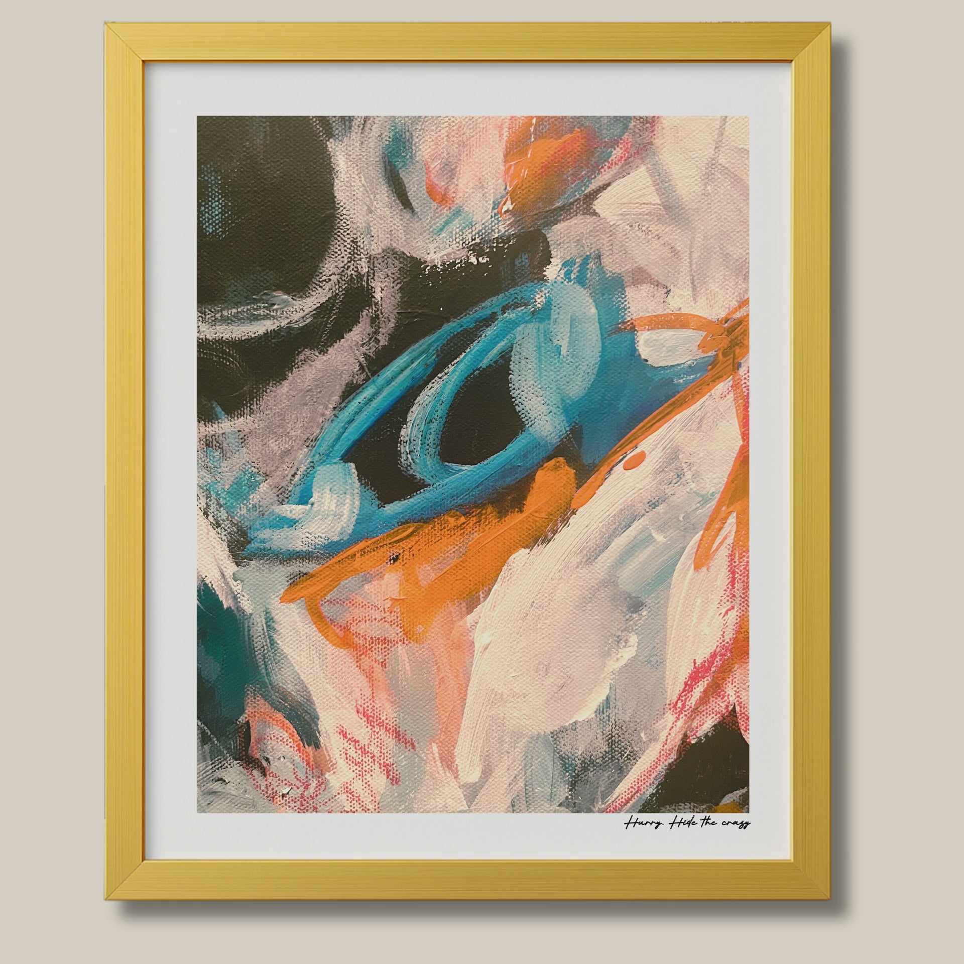 From far away, the piece looks controlled and composed. Up close, the title admits what the people who really know you already see: a lot is happening under the surface, and that is ok.
