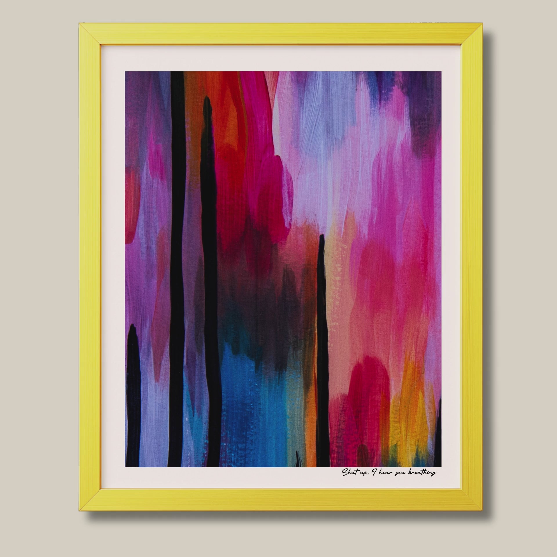 From a distance, the piece reads as calm and composed. Up close, the title delivers the line you are too polite to say out loud. Most of the time.